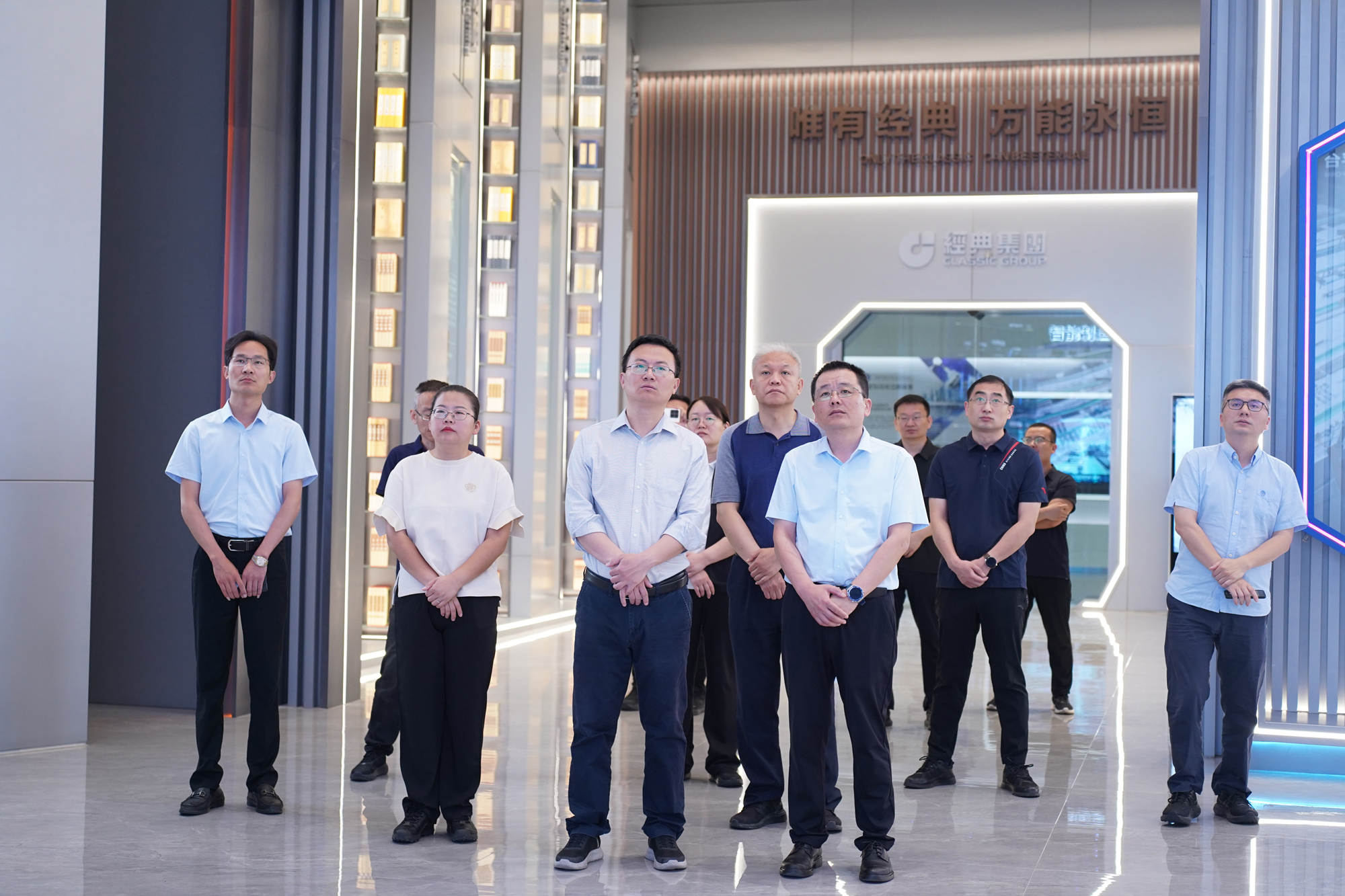 調研組實地考察了經典重工事業園、裝配式科技園及智慧物流園等,重點查看高端裝配式建筑集成房屋項目生產線、數字化信息平臺及二期國際制造線建設,深入了解企業在裝配式鋼結構建筑領域的全產業鏈布局,對項目推動綠色建材產業化的示范效應給予肯定。